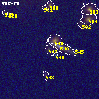 Object #547 x,y = (5254, 4692) RA, Dec = (11:57:57.216, -10:46:13.80) = (179.48840, -10.77050) BPZ = 0.302 [0.233--3.518] type = 7.70 (SB1_B10 - Scd_B10) chisq2 = 0.69 ODDS = 0.17 z_cluster = 0.570
