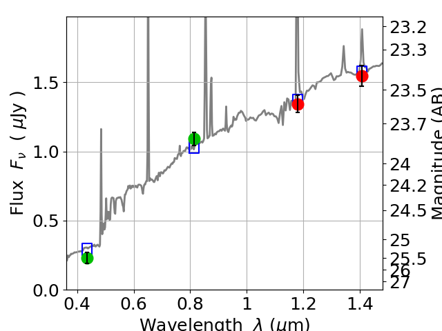 Best viewed in a wide browser window (1200 pixels or more). Download SED & P(z) plots to view larger versions.