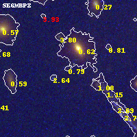 Object #568 x,y = (4460, 4634) RA, Dec = (11:58:00.456, -10:46:17.40) = (179.50190, -10.77150) BPZ = 0.789 [0.180--5.063] type = 8.80 (SB2_B10 - SB1_B10) chisq2 = 0.16 ODDS = 0.10 z_cluster = 0.570