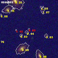 Object #581 x,y = (5796, 4809) RA, Dec = (11:57:55.008, -10:46:06.96) = (179.47920, -10.76860) BPZ = 0.624 [0.258--5.272] type = 7.80 (SB1_B10 - Scd_B10) chisq2 = 1.67 ODDS = 0.06 z_cluster = 0.570
