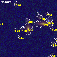 Object #587 x,y = (5584, 4634) RA, Dec = (11:57:55.872, -10:46:17.40) = (179.48280, -10.77150) BPZ = 0.556 [0.405--0.617] type = 4.00 (Ell4_A_0) chisq2 = 0.14 ODDS = 0.82 z_cluster = 0.570