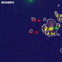 Object #646 x,y = (3429, 4560) RA, Dec = (11:58:04.656, -10:46:21.72) = (179.51940, -10.77270) BPZ = 2.777 [0.336--3.098] type = 8.70 (SB2_B10 - SB1_B10) chisq2 = 1.46 ODDS = 0.37 z_cluster = 0.570