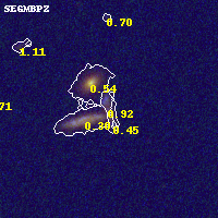 Object #689 x,y = (5455, 4453) RA, Dec = (11:57:56.400, -10:46:28.20) = (179.48500, -10.77450) BPZ = 0.920 [0.047--0.996] type = 8.90 (SB2_B10 - SB1_B10) chisq2 = 0.01 ODDS = 0.68 z_cluster = 0.570