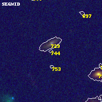 Object #744 x,y = (3565, 4392) RA, Dec = (11:58:04.104, -10:46:31.80) = (179.51710, -10.77550) BPZ = 0.593 [0.161--4.381] type = 9.00 (SB2_B10) chisq2 = 0.30 ODDS = 0.09 z_cluster = 0.570