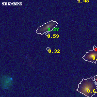 Object #753 x,y = (3567, 4361) RA, Dec = (11:58:04.080, -10:46:33.60) = (179.51700, -10.77600) BPZ = 0.324 [0.120--3.509] type = 10.10 (SB3_B10 - SB11_A_0_l) chisq2 = 0.58 ODDS = 0.13 z_cluster = 0.570