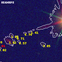 Object #805 x,y = (5160, 4260) RA, Dec = (11:57:57.600, -10:46:39.72) = (179.49000, -10.77770) BPZ = 1.411 [0.554--8.323] type = 6.00 (Sbc_B10) chisq2 = 0.44 ODDS = 0.08 z_cluster = 0.570