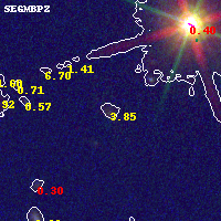 Object #824 x,y = (5199, 4217) RA, Dec = (11:57:57.432, -10:46:42.24) = (179.48930, -10.77840) BPZ = 3.853 [3.551--5.059] type = 8.30 (SB1_B10 - SB2_B10) chisq2 = 0.06 ODDS = 0.38 z_cluster = 0.570
