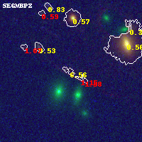 Object #857 x,y = (3922, 4123) RA, Dec = (11:58:02.640, -10:46:48.00) = (179.51100, -10.78000) BPZ = 6.562 [1.157--7.987] type = 8.00 (SB1_B10) chisq2 = 0.03 ODDS = 0.36 z_cluster = 0.570