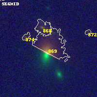 Object #869 x,y = (4101, 4034) RA, Dec = (11:58:01.920, -10:46:53.40) = (179.50800, -10.78150) BPZ = 0.824 [0.622--1.186] type = 1.00 (Ell7_A_0) chisq2 = 0.00 ODDS = 0.44 z_cluster = 0.570