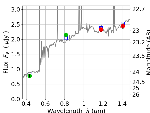 Best viewed in a wide browser window (1200 pixels or more). Download SED & P(z) plots to view larger versions.