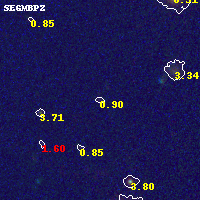 Object #915 x,y = (4434, 3942) RA, Dec = (11:58:00.552, -10:46:58.80) = (179.50230, -10.78300) BPZ = 0.895 [0.197--3.768] type = 8.70 (SB2_B10 - SB1_B10) chisq2 = 0.90 ODDS = 0.09 z_cluster = 0.570