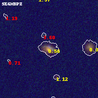 Object #976 x,y = (5100, 3615) RA, Dec = (11:57:57.840, -10:47:18.60) = (179.49100, -10.78850) BPZ = 0.557 [0.389--0.712] type = 5.90 (Sbc_B10 - ES0_B10) chisq2 = 0.15 ODDS = 0.54 z_cluster = 0.570