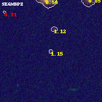 Object #986 x,y = (5110, 3514) RA, Dec = (11:57:57.792, -10:47:24.36) = (179.49080, -10.79010) BPZ = 1.151 [0.546--2.982] type = 10.10 (SB3_B10 - SB11_A_0_l) chisq2 = 0.46 ODDS = 0.12 z_cluster = 0.570