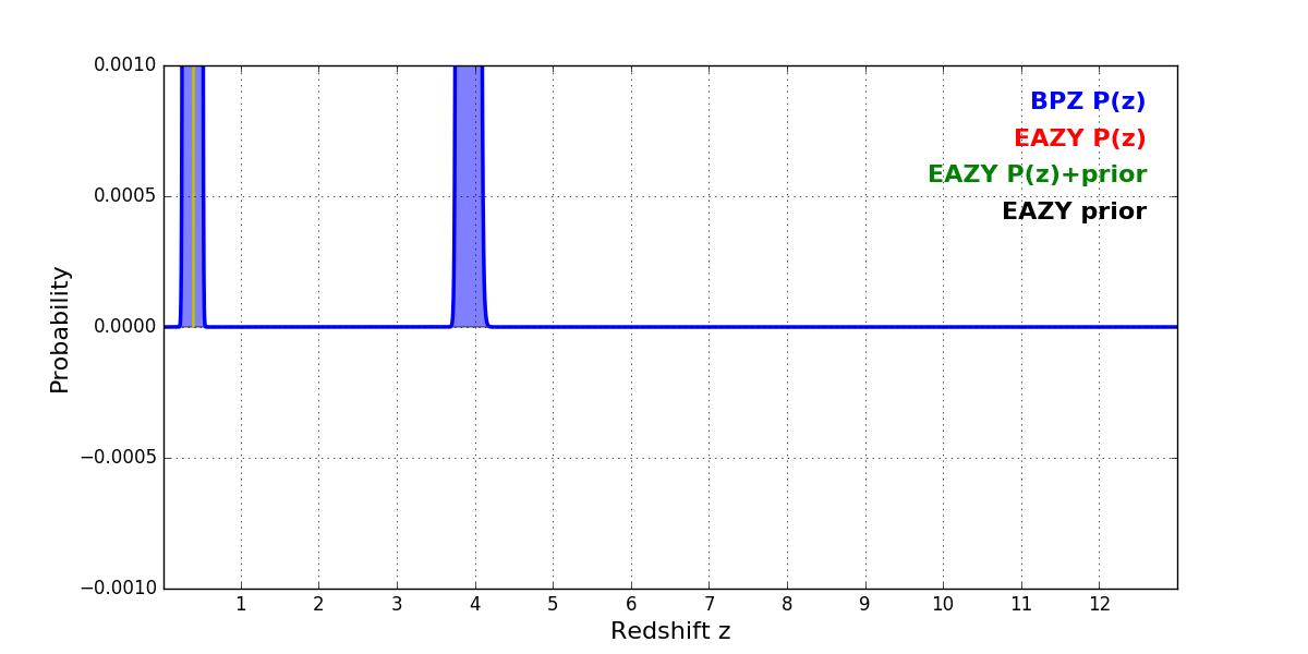 In P(z) plots: Yellow lines mark the cluster redshift z = 0.390,