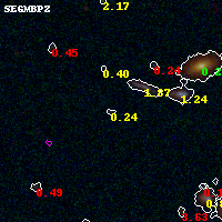 Black segments are analyzed here. Roll mouse over color images to view segments. Best viewed in a wide browser window (1200 pixels or more). Download SED & P(z) plots to view larger versions.