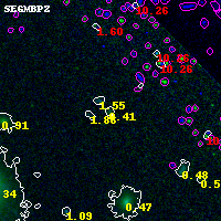 Black segments are analyzed here. Roll mouse over color images to view segments. Best viewed in a wide browser window (1200 pixels or more). Download SED & P(z) plots to view larger versions.