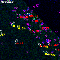 Black segments are analyzed here. Roll mouse over color images to view segments. Best viewed in a wide browser window (1200 pixels or more). Download SED & P(z) plots to view larger versions.