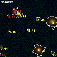 Black segments are analyzed here. Roll mouse over color images to view segments. Best viewed in a wide browser window (1200 pixels or more). Download SED & P(z) plots to view larger versions.