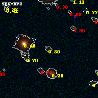 Black segments are analyzed here. Roll mouse over color images to view segments. Best viewed in a wide browser window (1200 pixels or more). Download SED & P(z) plots to view larger versions.
