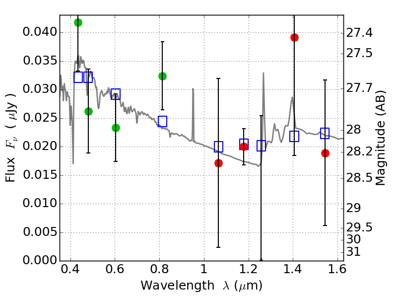 Black segments are analyzed here. Roll mouse over color images to view segments. Best viewed in a wide browser window (1200 pixels or more). Download SED & P(z) plots to view larger versions.