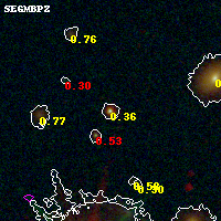 Black segments are analyzed here. Roll mouse over color images to view segments. Best viewed in a wide browser window (1200 pixels or more). Download SED & P(z) plots to view larger versions.