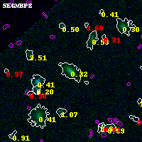Black segments are analyzed here. Roll mouse over color images to view segments. Best viewed in a wide browser window (1200 pixels or more). Download SED & P(z) plots to view larger versions.