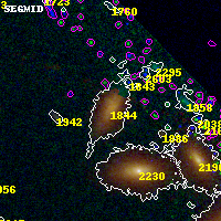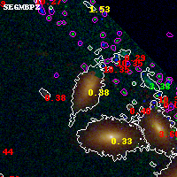 Black segments are analyzed here. Roll mouse over color images to view segments. Best viewed in a wide browser window (1200 pixels or more). Download SED & P(z) plots to view larger versions.