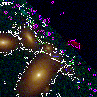 Black segments are analyzed here. Roll mouse over color images to view segments. Best viewed in a wide browser window (1200 pixels or more). Download SED & P(z) plots to view larger versions.