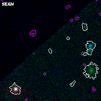 Black segments are analyzed here. Roll mouse over color images to view segments. Best viewed in a wide browser window (1200 pixels or more). Download SED & P(z) plots to view larger versions.