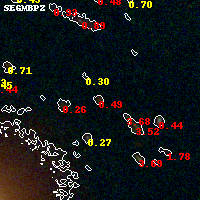 Black segments are analyzed here. Roll mouse over color images to view segments. Best viewed in a wide browser window (1200 pixels or more). Download SED & P(z) plots to view larger versions.