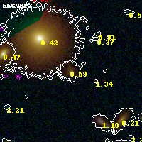 Black segments are analyzed here. Roll mouse over color images to view segments. Best viewed in a wide browser window (1200 pixels or more). Download SED & P(z) plots to view larger versions.