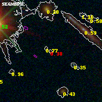 Black segments are analyzed here. Roll mouse over color images to view segments. Best viewed in a wide browser window (1200 pixels or more). Download SED & P(z) plots to view larger versions.