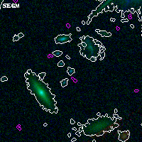 Black segments are analyzed here. Roll mouse over color images to view segments. Best viewed in a wide browser window (1200 pixels or more). Download SED & P(z) plots to view larger versions.