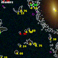 Black segments are analyzed here. Roll mouse over color images to view segments. Best viewed in a wide browser window (1200 pixels or more). Download SED & P(z) plots to view larger versions.