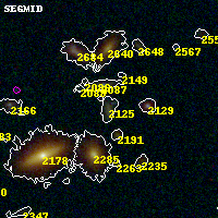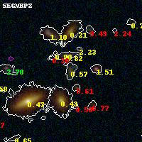 Black segments are analyzed here. Roll mouse over color images to view segments. Best viewed in a wide browser window (1200 pixels or more). Download SED & P(z) plots to view larger versions.