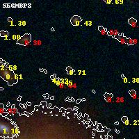 Black segments are analyzed here. Roll mouse over color images to view segments. Best viewed in a wide browser window (1200 pixels or more). Download SED & P(z) plots to view larger versions.