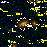 Black segments are analyzed here. Roll mouse over color images to view segments. Best viewed in a wide browser window (1200 pixels or more). Download SED & P(z) plots to view larger versions.