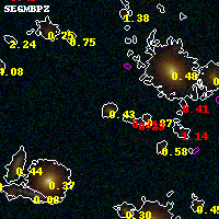 Black segments are analyzed here. Roll mouse over color images to view segments. Best viewed in a wide browser window (1200 pixels or more). Download SED & P(z) plots to view larger versions.