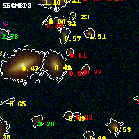 Black segments are analyzed here. Roll mouse over color images to view segments. Best viewed in a wide browser window (1200 pixels or more). Download SED & P(z) plots to view larger versions.