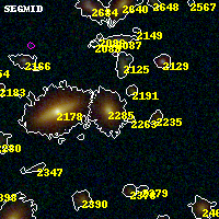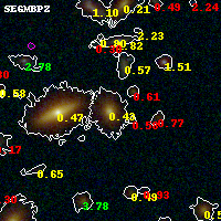 Black segments are analyzed here. Roll mouse over color images to view segments. Best viewed in a wide browser window (1200 pixels or more). Download SED & P(z) plots to view larger versions.