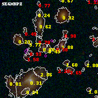 Black segments are analyzed here. Roll mouse over color images to view segments. Best viewed in a wide browser window (1200 pixels or more). Download SED & P(z) plots to view larger versions.