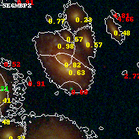 Black segments are analyzed here. Roll mouse over color images to view segments. Best viewed in a wide browser window (1200 pixels or more). Download SED & P(z) plots to view larger versions.