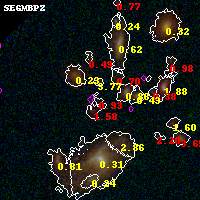 Black segments are analyzed here. Roll mouse over color images to view segments. Best viewed in a wide browser window (1200 pixels or more). Download SED & P(z) plots to view larger versions.