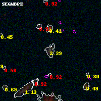 Black segments are analyzed here. Roll mouse over color images to view segments. Best viewed in a wide browser window (1200 pixels or more). Download SED & P(z) plots to view larger versions.