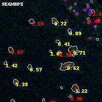 Black segments are analyzed here. Roll mouse over color images to view segments. Best viewed in a wide browser window (1200 pixels or more). Download SED & P(z) plots to view larger versions.