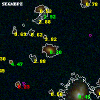 Black segments are analyzed here. Roll mouse over color images to view segments. Best viewed in a wide browser window (1200 pixels or more). Download SED & P(z) plots to view larger versions.