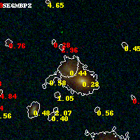 Black segments are analyzed here. Roll mouse over color images to view segments. Best viewed in a wide browser window (1200 pixels or more). Download SED & P(z) plots to view larger versions.
