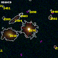 Black segments are analyzed here. Roll mouse over color images to view segments. Best viewed in a wide browser window (1200 pixels or more). Download SED & P(z) plots to view larger versions.