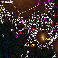 Black segments are analyzed here. Roll mouse over color images to view segments. Best viewed in a wide browser window (1200 pixels or more). Download SED & P(z) plots to view larger versions.
