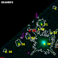 Black segments are analyzed here. Roll mouse over color images to view segments. Best viewed in a wide browser window (1200 pixels or more). Download SED & P(z) plots to view larger versions.